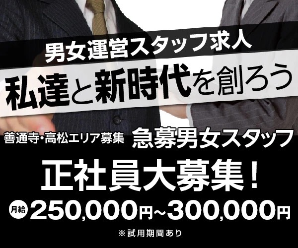 【急募!】採用率99%☆本店・高松店キャストさん同時大募集!全国どこからでもガッツリ高収入♪容姿・体型・年齢は関係なし!エリア最高バック率!完全自由出勤制☆当日の面接・体入OK!信頼と実績の安心老舗優良店♪